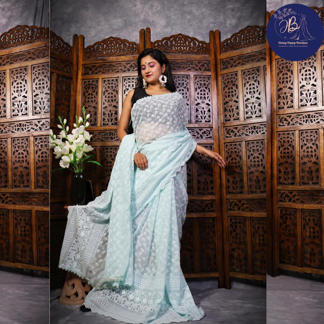 Turn heads with this ✨ All Over Sequin Work Georgette Saree, designed for those who love to shine at every occasion. Made from lightweight and flowy premium georgette fabric, this saree brings unmatched grace with every drape.