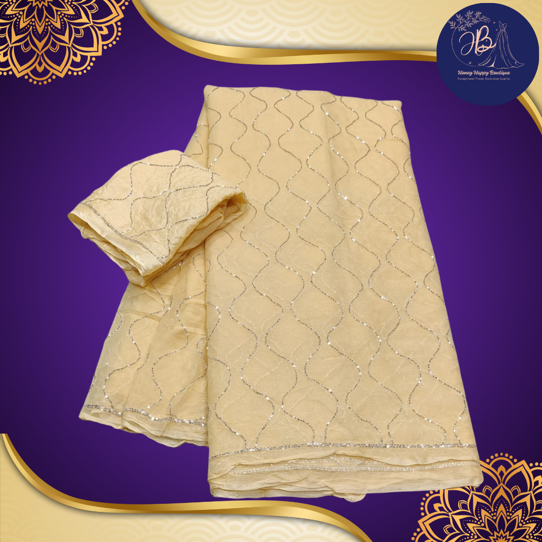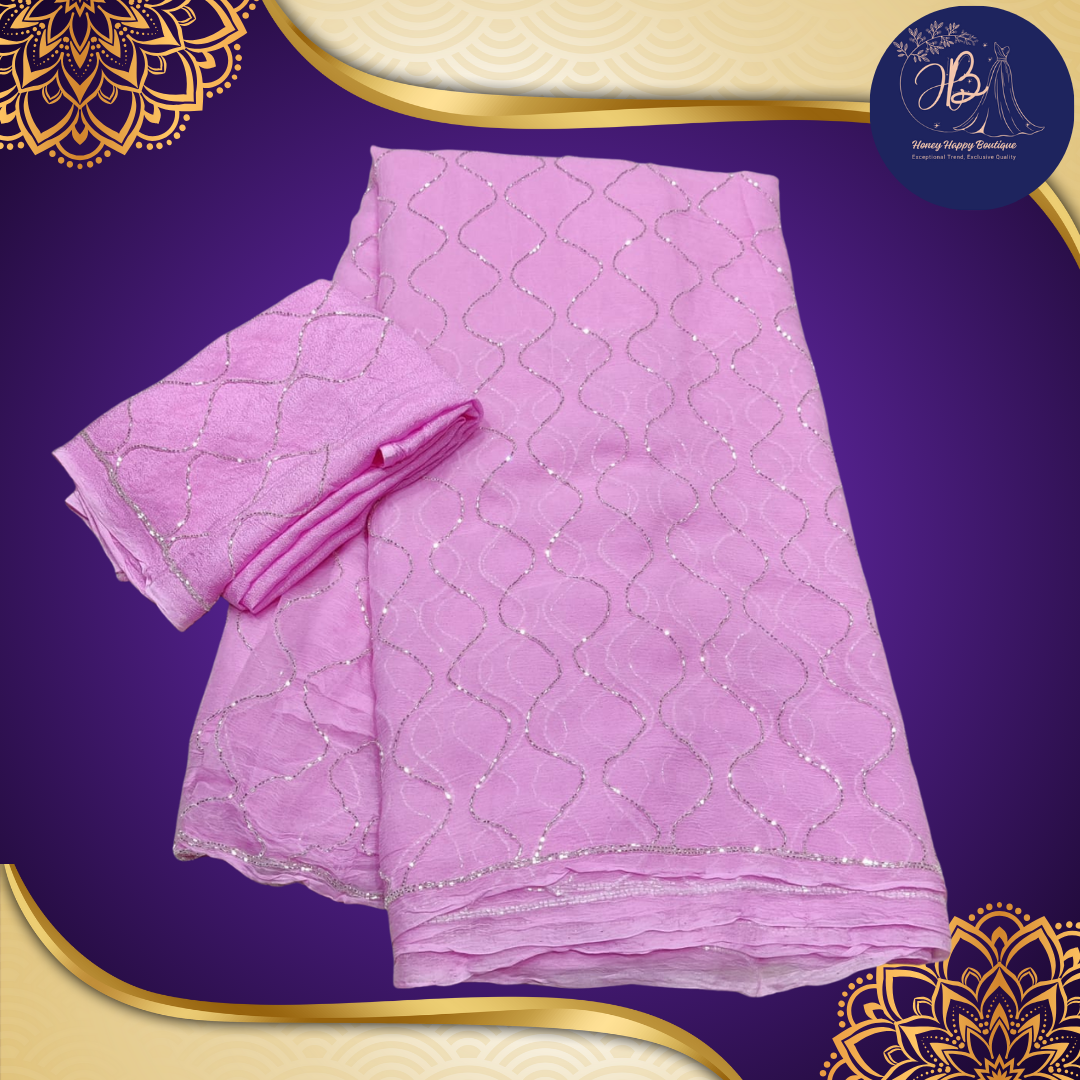 Introducing the Pastel Najbeen Chiffon Saree with Delicate Katdana Handwork, an elegant blend of grace and tradition. Crafted from soft, flowy Najbeen chiffon fabric, this saree features delicate Katdana lahar handwork that sparkles with sophistication. 💎💫