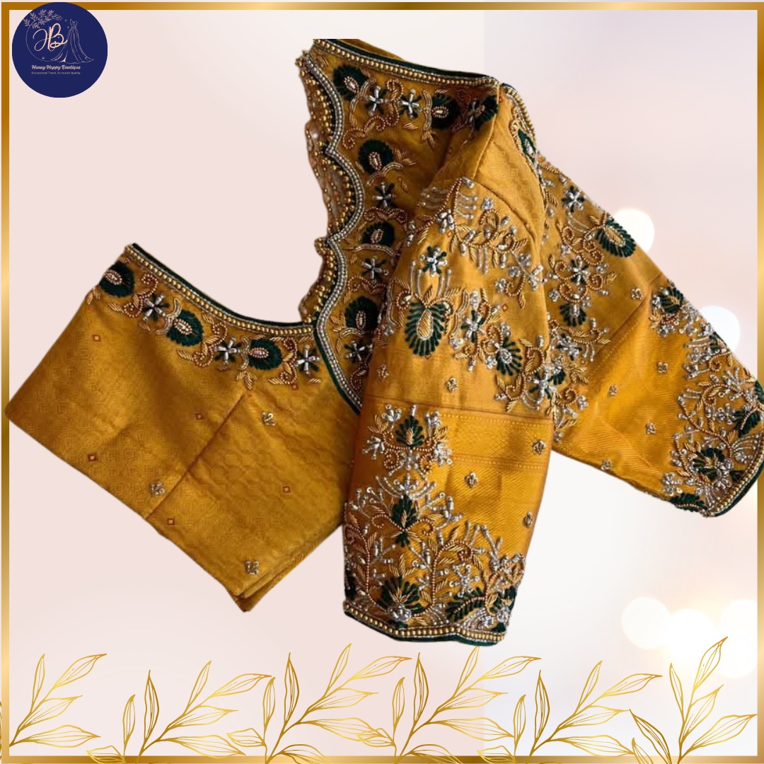 Celebrate elegance with our stunning Soft Silk Blouse with Total Zardosi and Thread Work and Custom Stitching. This blouse is beautifully hand-embroidered using intricate zardosi techniques and detailed thread work, making it perfect for bridal, festive, and ethnic occasions.